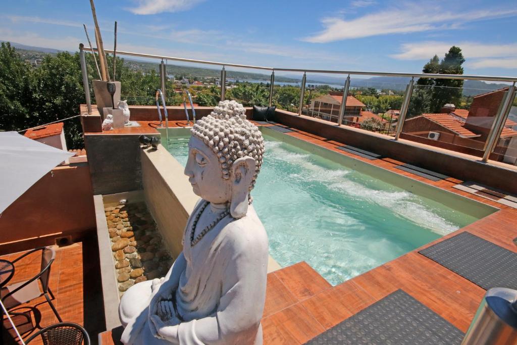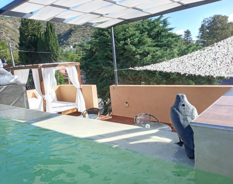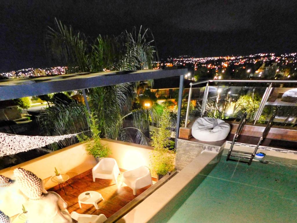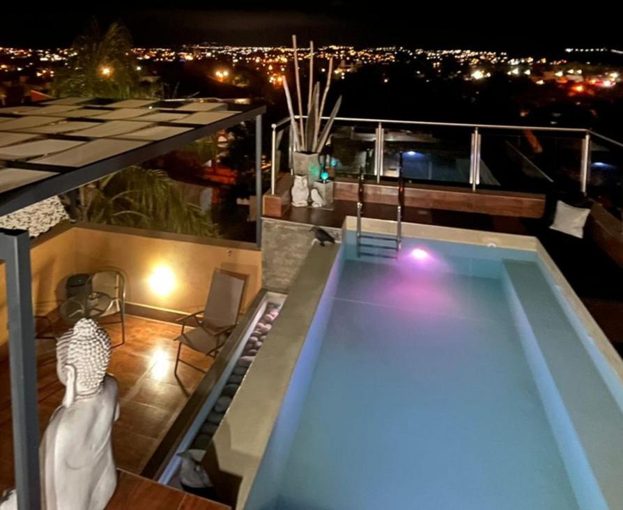 Piscina en Altura Vista 360.Piscina con sistema de templado solar.Cascada.sillones y Camastros. Piscinas y Exteriores Contamos con 2 Piscinas para que su experiencia sea la mejor. Piscina en planta baja Sistema de climatizacion a gas hasta los 38 grados. Mini Piscina SPA (piscina hydroshell).Mesas y Sillas. imagenes: